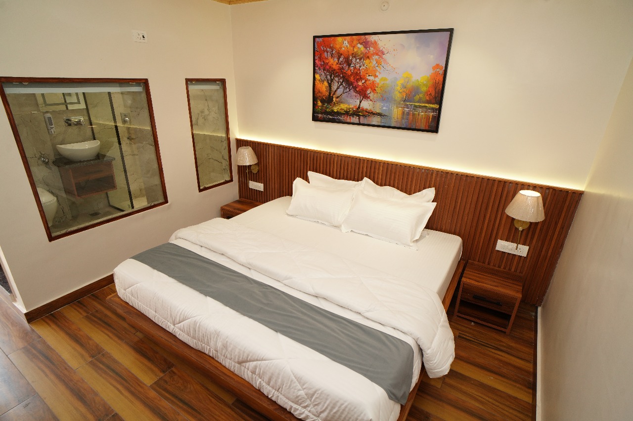 Upgrade your stay with our spacious Deluxe Room, conveniently located near the Old Bus Stand. These rooms offer enhanced comfort, featuring a King-size bed and more floor space (approx. 200 sq.ft.). Amenities include a flat-screen TV, complimentary Wi-Fi, electric kettle, and for added luxury, select rooms also include Air Conditioning and a private Balcony offering beautiful views of Solan or the surrounding mountains.